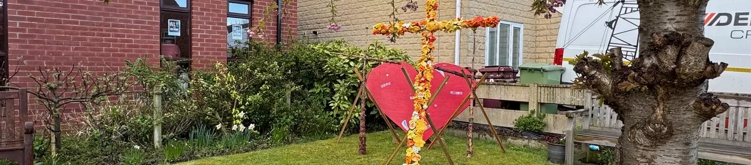 There are some pictures above of our Good Friday shared remembrance service in the garden, replaced today by the joyous flowered cross, and our Easter garden flowers.